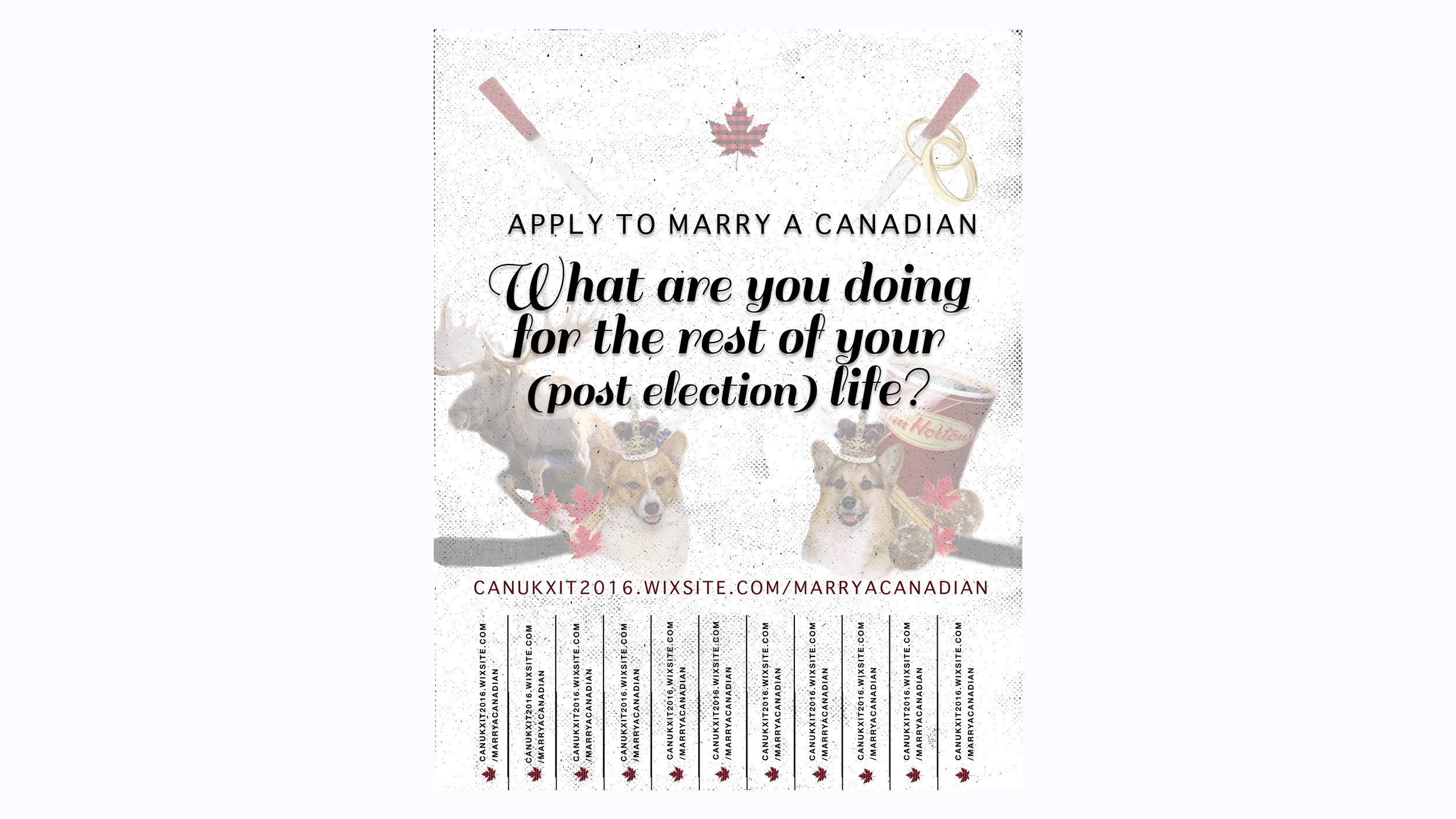 I posted fliers around the city of San Francisco with links to a webpage, there everyone who is dreaming of a better life in the great white north would have a fair chance to marry a Canadian. The results may surprise you.