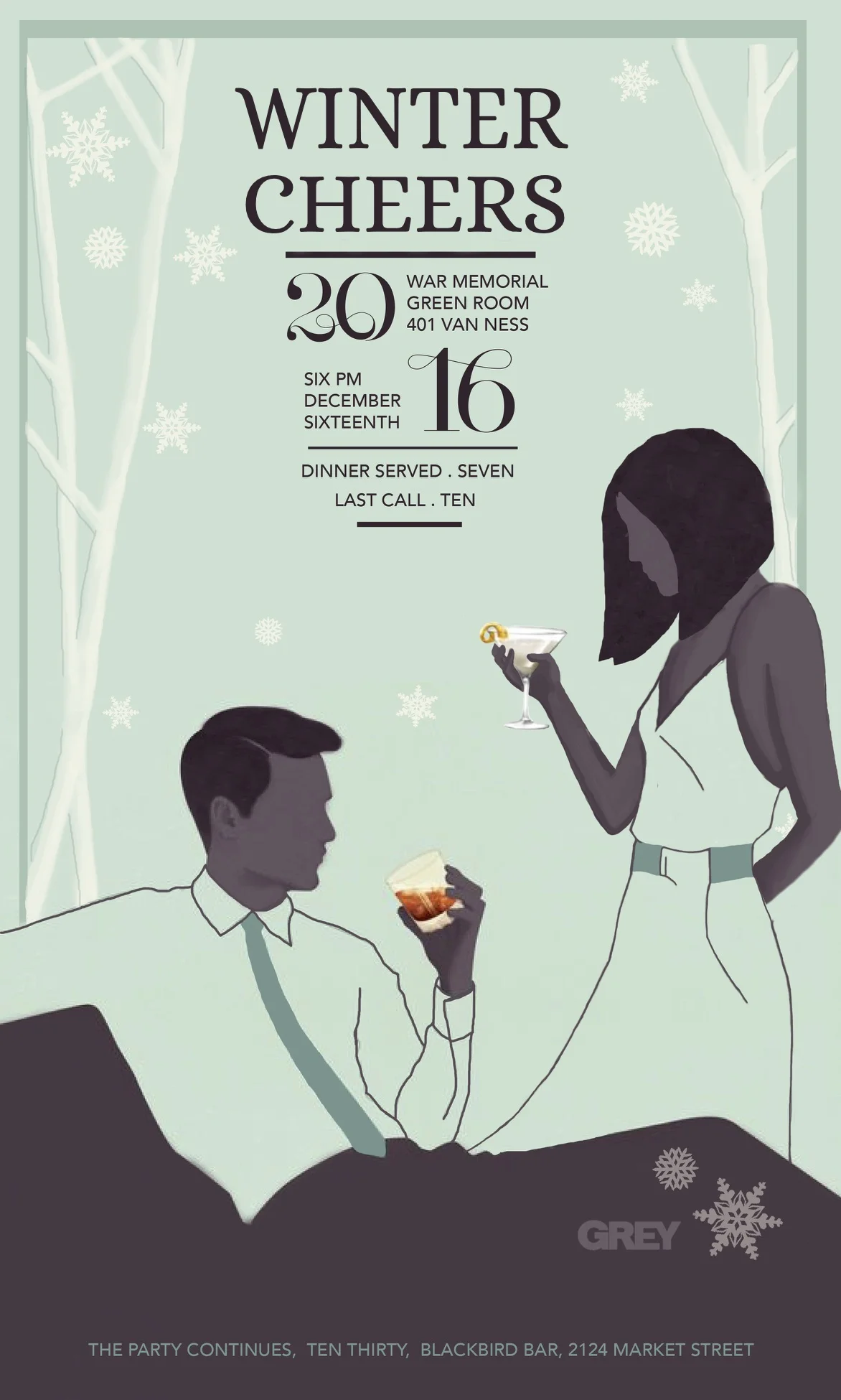 During an internship at Grey San Francisco I was asked to design an invitation to their holiday celebration. The name and design was asked to fit the theme of winter wonderland.
