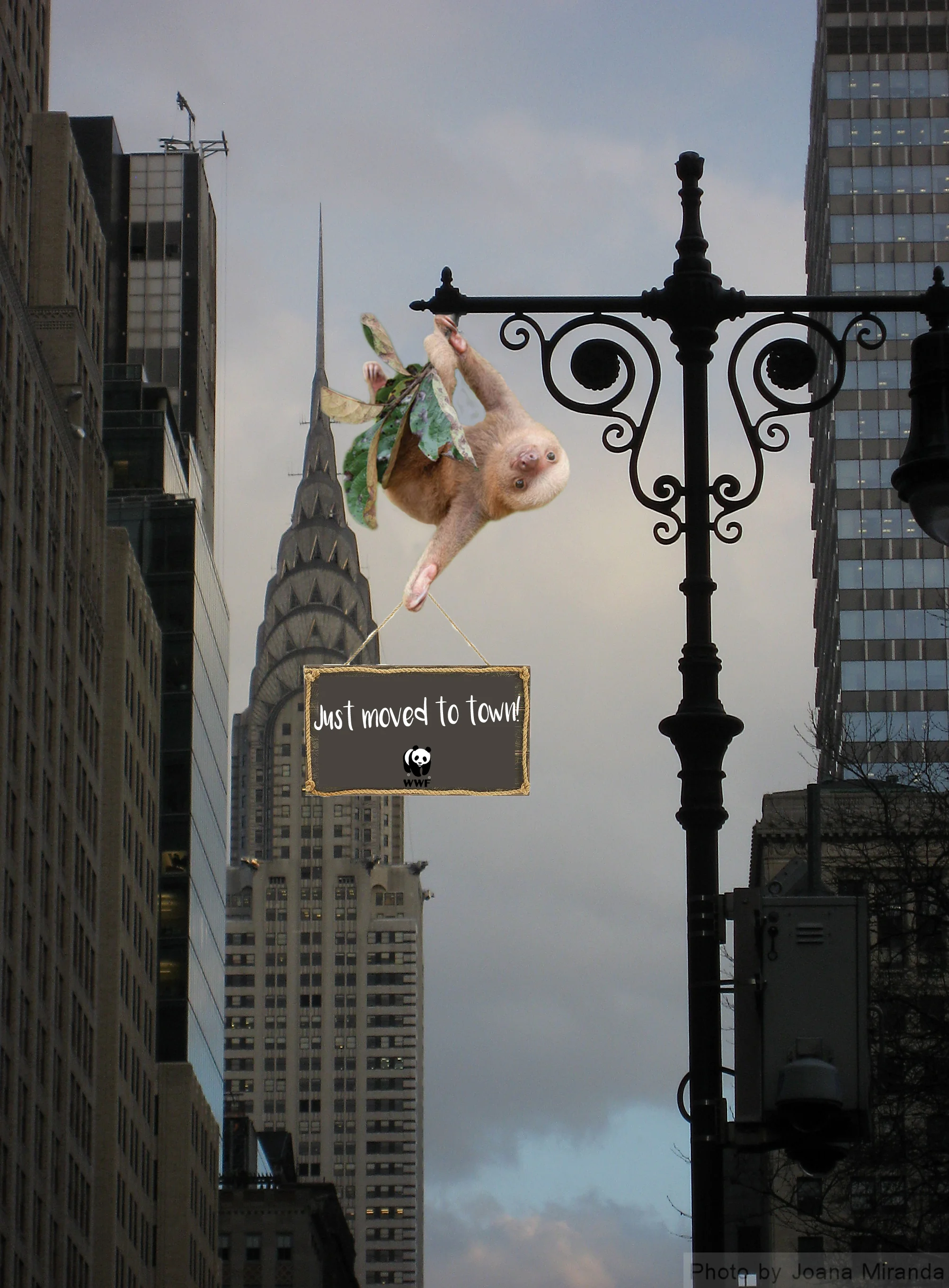 To promote Calvin, WWF will hang fake sloths on lamp posts throughout the city bringing attention to Calvin’s big move.